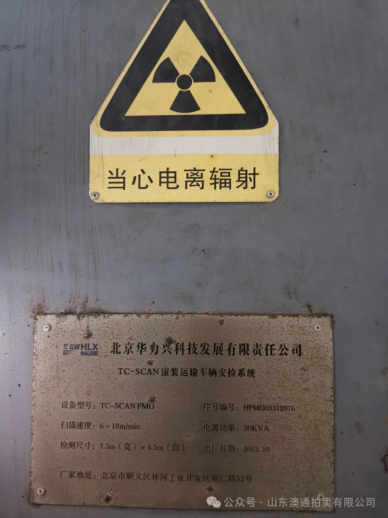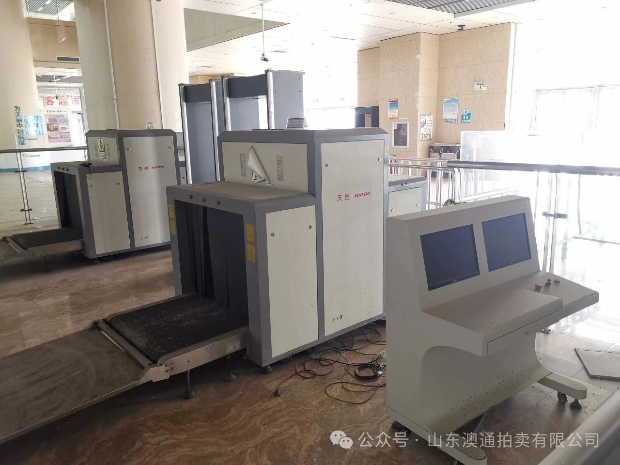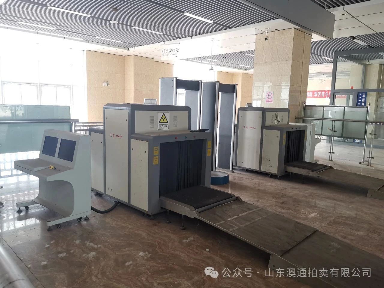 4、X射線客運(yùn)安全檢查設(shè)備2臺(tái) 規(guī)格型號(hào):10080,重量:450千克,電源:220V50HZ,額定功率:1500V, 出廠日期:2013年 4月